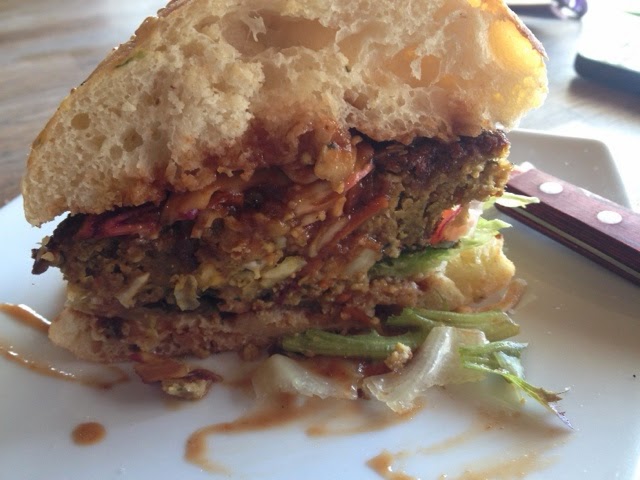 I was going to post a photo of my burger but then I ate it before remembering to photograph it. Not surprising really :) So here's a photo of Nadine's new fave option, a chick pea felafel burger made vegan :)